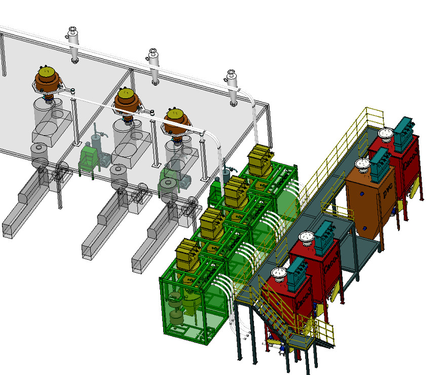 多層廠房采用一次輸送方式,即物料從原料倉輸送至計量磅秤后靠自重垂直落入攪拌機內(nèi);單層廠房采用二次輸送方式,即物料從原料倉輸送至計量磅秤后,再從計量磅秤輸送至上料單元后靠自重垂直落入攪拌機內(nèi)。若客戶的生產(chǎn)工藝流程有其他特殊要求,我公司可以根據(jù)客戶實際需求做出相應(yīng)調(diào)整。
